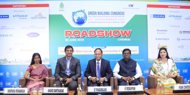 Chennai, June 2025: The Indian Green Building Council (IGBC), part of the Confederation of Indian Industry (CII), successfully hosted its first regional roadshow in the run-up to the much-anticipated 23rd edition of the Green Building Congress, scheduled to be held from 27–29 November 2025 at the Jio World Convention Centre in Mumbai. The Chennai Roadshow, held at Feathers – A Radha Hotel, was an inspiring convergence of sustainability leaders, architects, industry experts, and policymakers.