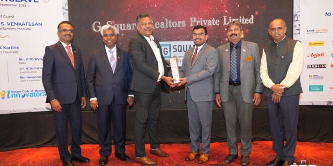 Madurai, 16 September 2025: G Square, India’s largest plotted real estate developer, has been honoured with an Environmental Excellence Award for its outstanding commitment to sustainability and environmental conservation at the CSR Conclave 2025. The event was organised by Rotary District 3000 and the Rotary Club of Madurai Innovators.