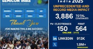 Chennai, Oct 2025 – SEMICON India 2025 has concluded on a historic note, emerging as a landmark platform that showcased India’s growing strength in Semiconductors and electronics. Inaugurated by Hon’ble Prime Minister Shri Narendra Modi, in the presence of Shri. Ashwini Vaishnaw, Minister for Electronics & IT, Railways and I&B, Chief Ministers …