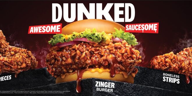 The awesome saucesome range takes KFC’s iconic finger lickin’ good chicken & dunks it in bold, indulgent flavours. Featuring an all-new Fiery Texas BBQ sauce, the Dunked range is designed to make every bite saucy